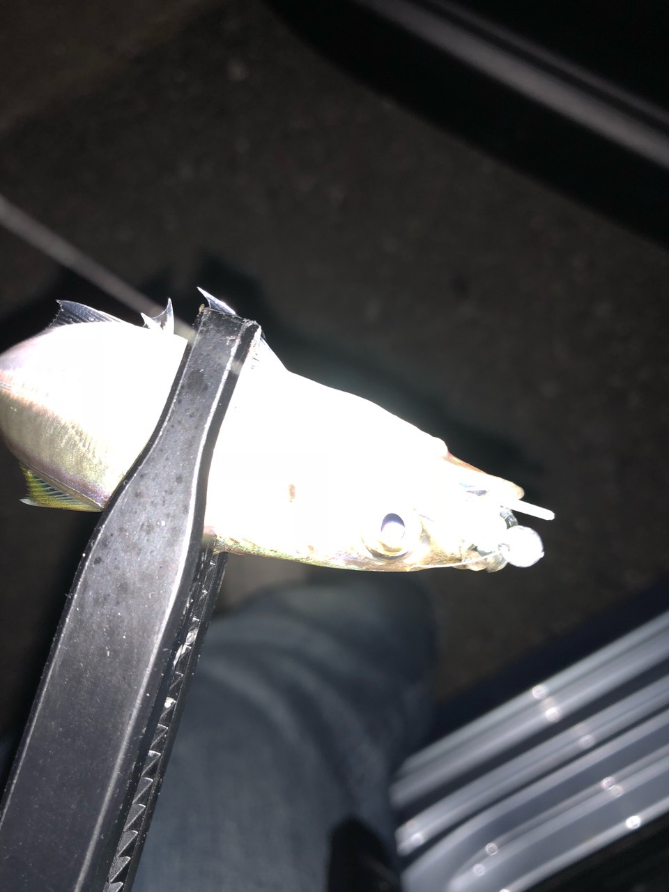 20cmオーバーを狙うとすると、いつものアーミーフックや、サイコロヘッドminiだと、一旦吸い込んだとしても、フックポイントがどこにも当たることなくスムーズに吐き出されることもあるからですねぇ〜。